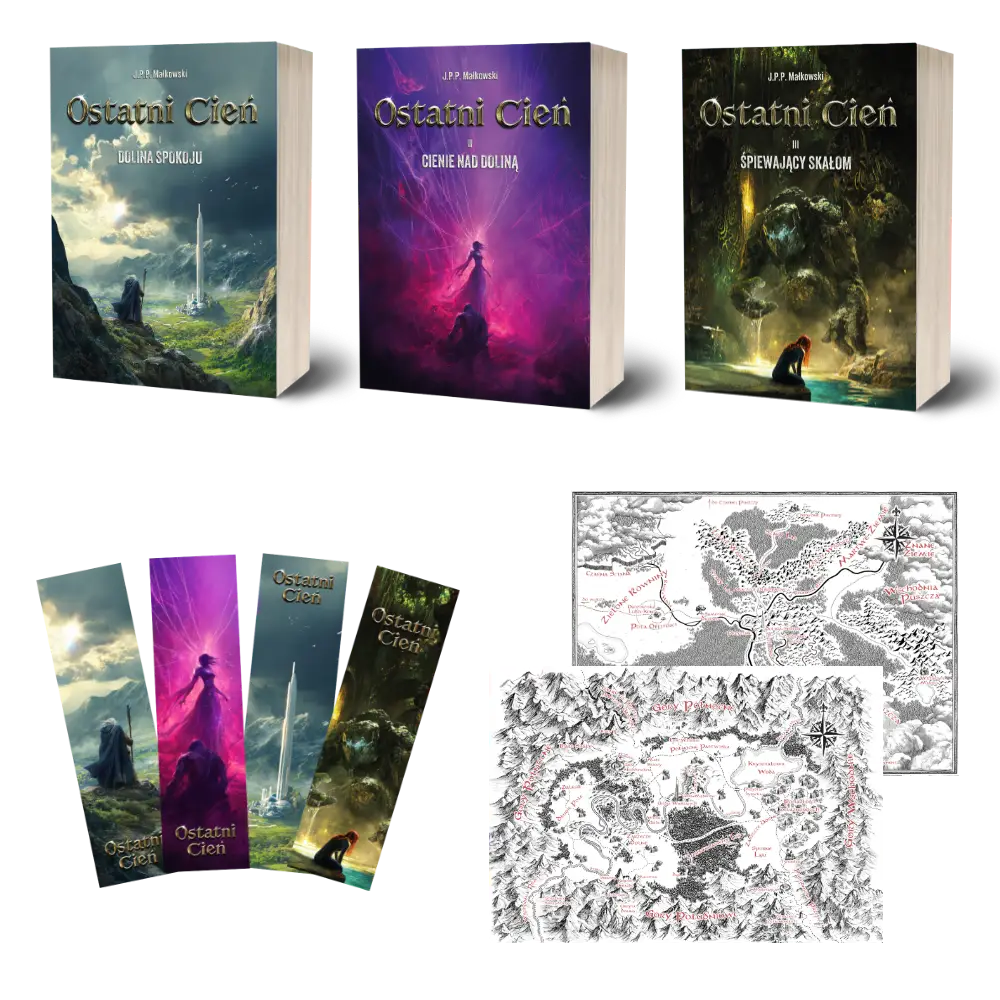 Czekają na Ciebie już trzy księgi pełne przygód! A w 2026 r. dołączy do nich czwarta, która jest obecnie w trakcie pisania.